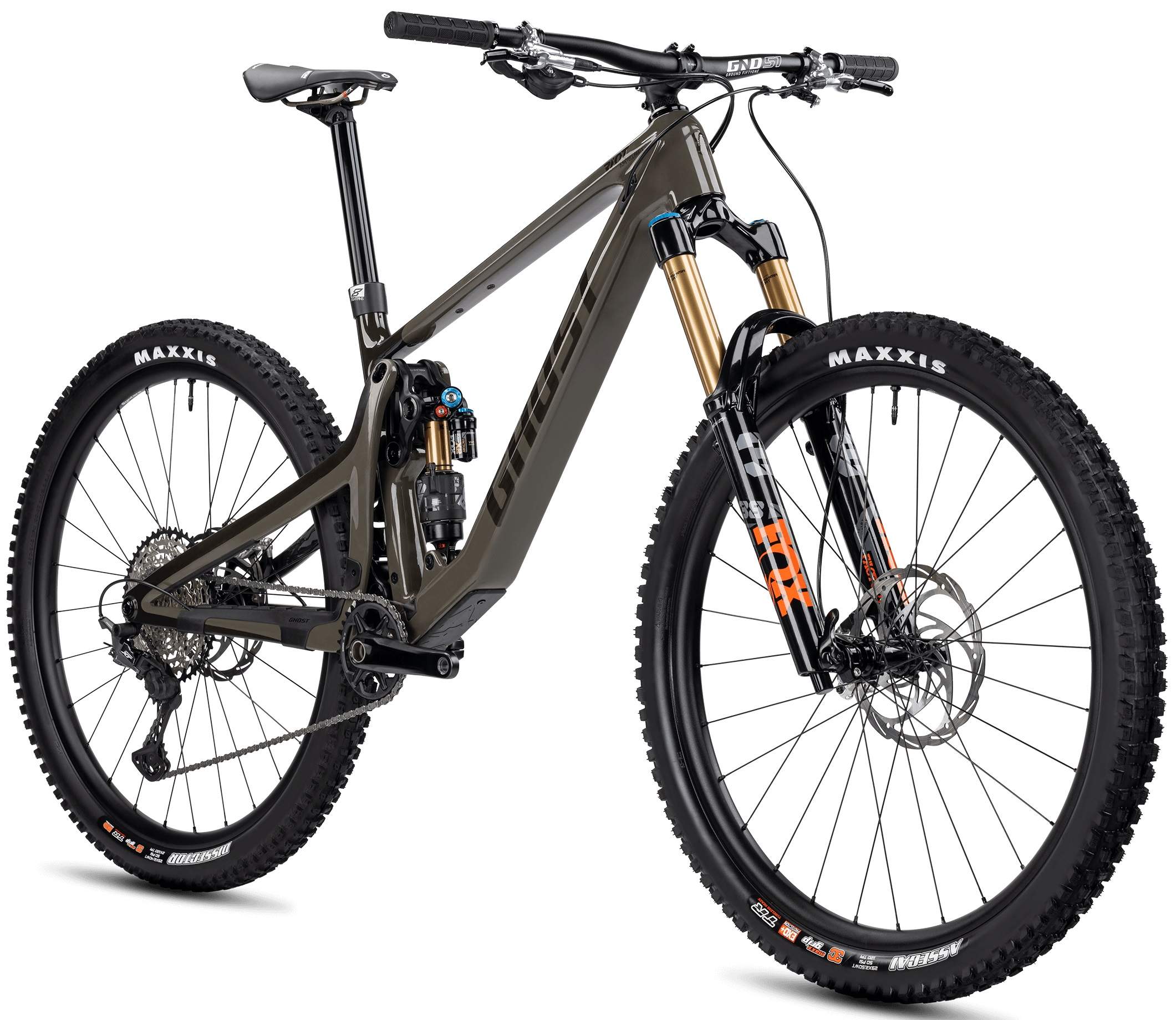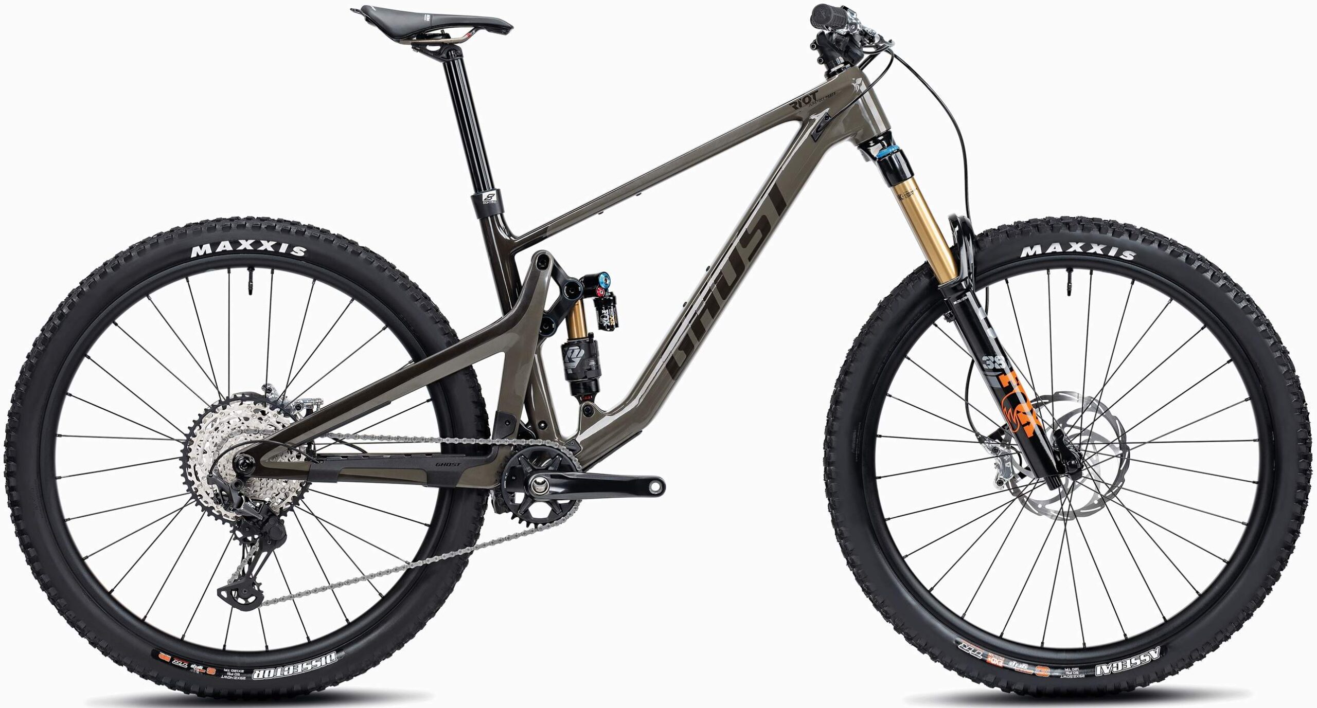 La bicicleta Ghost Riot AM CF/CF 160/140 Full Party 2025 es el resultado de la suma de ingeniería de vanguardia y la pasión por el ciclismo de montaña. Ha sido diseñada para los entusiastas que buscan superar sus límites, siendo una bicicleta all-mountain que reinventará tus experiencias en los senderos técnicos. Cuenta con un cuadro de carbono de alta calidad, que no solo reduce el peso total de la bicicleta haciéndola más rápida, sino que también te va a proporcionar una rigidez óptima para una transferencia de potencia eficiente. Además, este material cuenta con muchas características que van a hacer que mejores tu experiencia de montaña. Una de ellas es su absorción de vibraciones, pudiéndole sacar provecho en condiciones con alta complejidad técnica. Su geometría ha sido meticulosamente diseñada para ofrecerte una postura ergonómica y un control superior en tramos difíciles. Con un ángulo de tubo de dirección de 63,5 grados y un ángulo de tubo de sillín de 76,5 grados, esta bicicleta garantiza estabilidad en descensos pronunciados y eficiencia en ascensos exigentes.La suspensión que se ha elegido para  esta MTB es muy conocida gracias a su funcionamiento en rutas muy complejas. Equipada con una horquilla Fox Racing Shox 38 Float Factory GRIP2 de 160 mm en la parte delantera, ofrece una absorción de impactos excepcional, permitiéndote afrontar los descensos más desafiantes con total confianza. Por otro lado, en la parte trasera cuenta con el amortiguador Fox Racing Shox Float X2 Factory de 140 mm asegura una tracción y control óptimos, manteniendo la rueda trasera pegada al suelo incluso en los terrenos más irregulares. Los componentes de transmisión y frenado de esta bicicleta de carbono de montaña te van a hacer disfrutar de cada pedalada que des en las rutas. La transmisión está a cargo de Shimano, con un desviador trasero XT RD-M8100 de 12 velocidades que te dará una experiencia en los cambios suaves y precisos. El cassette SLX CS-M7100-12 con un rango de 10-50T proporciona la versatilidad necesaria para enfrentar tramos de subidas empinadas como sprints en terrenos planos. A su vez, la bicicleta Ghost Riot AM CF/CF 160/140 Full Party 2025 cuenta con los frenos de disco hidráulicos Formula Cura 4 con rotores de 203 mm en ambas ruedas garantizan una potencia de frenado muy consistente. La efectividad será total incluso en condiciones húmedas y fangosas. Las ruedas y neumáticos son componentes de alto rendimiento y que harán de la bicicleta un conjunto perfecto con la que dominar todas tus metas. Las ruedas Syntace V30 de 29 pulgadas, combinadas con neumáticos Maxxis Assegai 3C MaxxGrip Exo+ 2.5 en la parte delantera y Maxxis Dissector 3C MaxxGrip Double Down 2.4 en la trasera, ofrecen una tracción y estabilidad excepcionales. Esta combinación va a asegurar un rodaje suave y un agarre increíble en gran variedad de superficies en las que ruedes. Podrás rodar con la mejor eficiencia en los senderos secos y polvorientos hasta terrenos húmedos y resbaladizos, disfrutando cada tramo del camino. Esta MTB de doble suspensión cuenta con componentes adicionales. El manillar Ghost Ground Fiftyone de aluminio, con un diámetro de 31,8 mm y disponible en anchos de 760 mm y 800 mm, proporciona un control preciso y una postura cómoda. La tija telescópica Eightpins Dropperpost H01 Hydraulic permite ajustes rápidos de la altura del sillín, facilitando la transmisión entre ascensos y descensos. El sillín WTB Volt ha sido diseñado para que tengas comodidad en largas jornadas de pedaleo, asegurando que puedas mantenerte en el sendero durante más tiempo sin molestias. Mucho más allá de su rendimiento sobresaliente, esta bicicleta de montaña destaca por su diseño elegante y moderno. Las líneas limpias del cuadro de carbono y la atención al detalle en la selección de componentes no solo mejoran la funcionalidad, sino que también aportan una estética que atraerá miradas en cualquier sendero.La bicicleta Ghost Riot AM CF/CF 160/140 Full Party 2025 es una auténtica máquina de carbono que te va a dar una experiencia de conducción única, haciendo que saques tu máximo rendimiento y que rompas todos los límites.