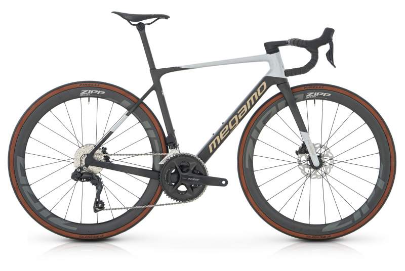 La Megamo Rise 15 CW 2025 viene equipada con el grupo Shimano 105 Di2 de 12 velocidades, un grupo testeado desde que salió al mercado y en que ha quedado claro la premisa principal del grupo 105 que son robustez y fiabilidad, ahora llevados al concepto semi-inalambrico consiguiendo de esta forma una precisión total en cada momento y a lo largo del tiempo. Hay que destacar las ruedas que Megamo ha incluido en su montaje y no son otras que las Zipp 303s, unas ruedas de carbono Hoockles, diseñadas para ser usadas con cubiertas de 28mm de anchura en adelante y que aparte del aspecto que le otrogan a la bicileta hacen que la calidad rodando junto con su grupo Shimano Di2 sea espectacular