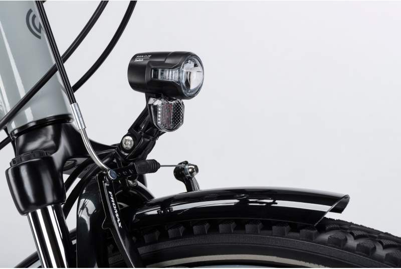 La seguridad es uno de los aspectos clave de esta bicicleta. Está equipada con frenos V-Brake de aluminio, siendo un modelo que te da una gran potencia de frenado confiable y efectiva en diversas condiciones climáticas. Además, cumple con las normativas de seguridad vial, incorporando luces delanteras y traseras, así como reflectores, asegurando que el ciclista sea visible en todo momento.