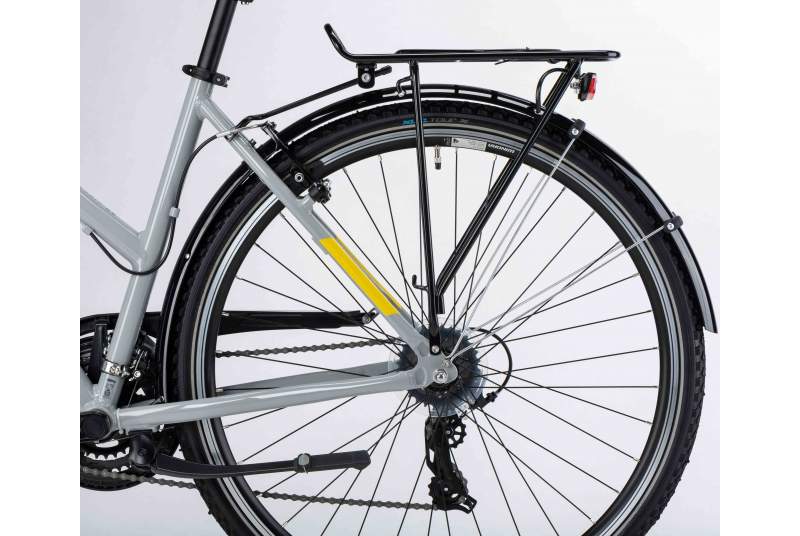 Por otro lado, las ruedas de 28 pulgadas de la bicicleta Winora Domingo 21 Mid 2025, combinadas con llantas de aluminio XLC y neumáticos antipinchazos, proporcionan una conducción suave y eficiente. Estos componentes han sido diseñados especialmente para bicicletas trekking, con el objetivo de ofrecer durabilidad y rendimiento. Con ella podrás recorrer largas distancias con la confianza que te da una gran bicicleta como esta.